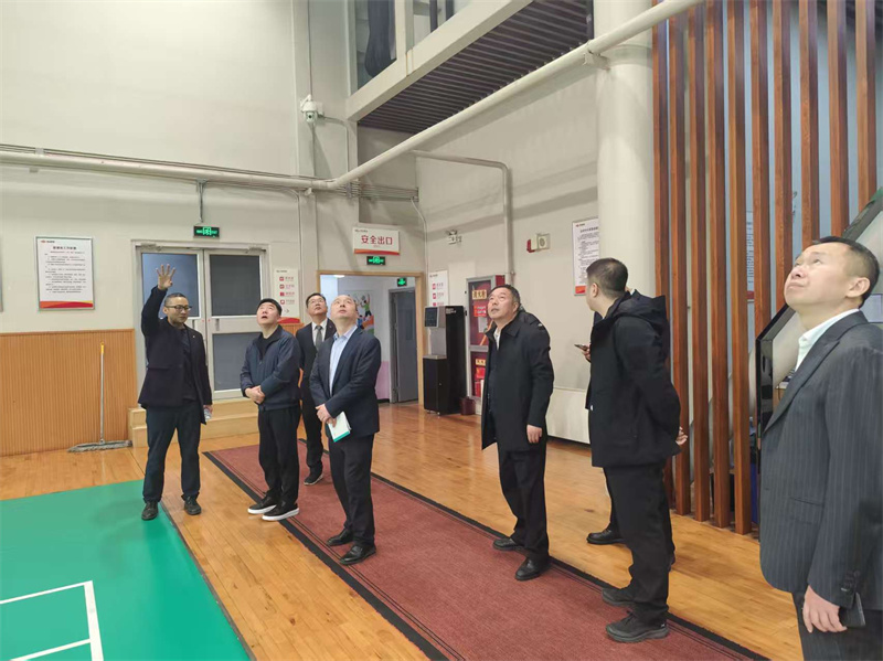 李家卫一行深入酒店消防监控室、微型消防站、避难层、配电室、柴油发电机房、运动中心及停机坪等关键区域,实地查看设备运行状况,并重点了解大跨度吊顶、高层建筑火灾风险隐患排查专项整治工作落实情况。