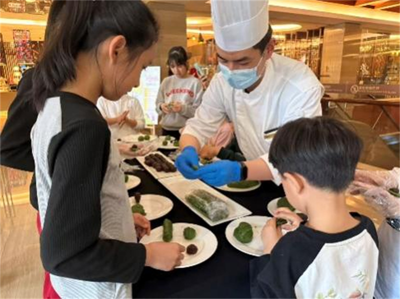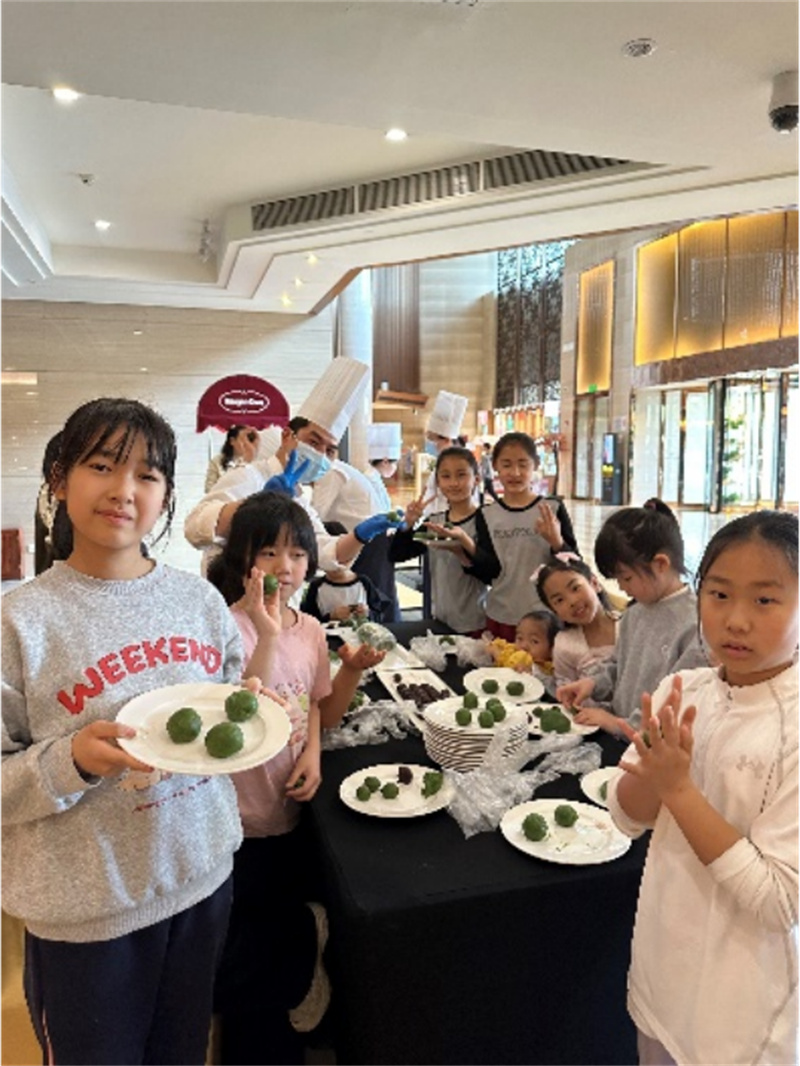 青团制作区人气十足,成为解锁春日滋味的核心打卡地。酒店厨师手把手手把手教学,详解清明吃青团的文化寓意——软糯团子裹着艾草清香,承载着对先人的追思对先人的追思与家族团圆的期许。活动现场,小朋友们踮着脚尖,认真跟着厨师学习揉、搓、包、压的每一个步骤,将对春日的喜爱、对生活的美好期许融入其中,出炉的青团软糯清香,尽显春日温柔与传统烟火气,让宾客在品尝美味的同时,读懂春日里的文化底蕴。
